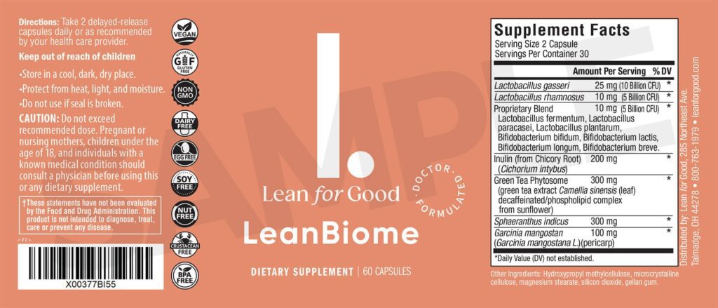 LeanBiome includes probiotics like Lactobacillus gasseri and Lactobacillus rhamnosus. It also has Greenselect Phytosome®, a green tea extract without caffeine.